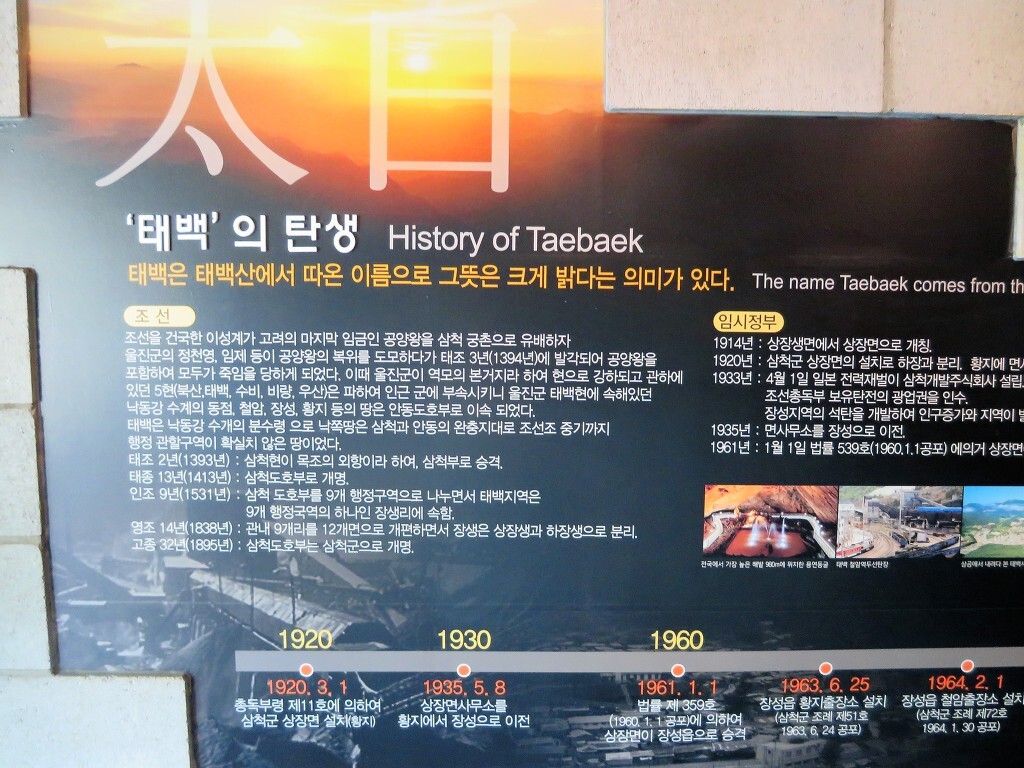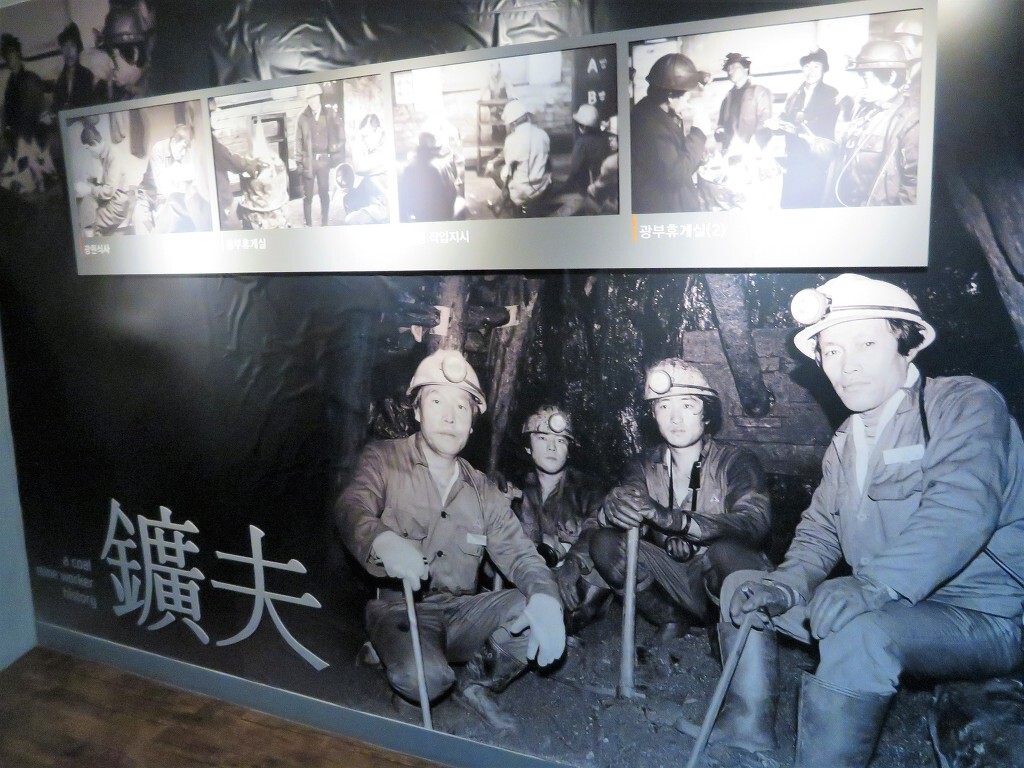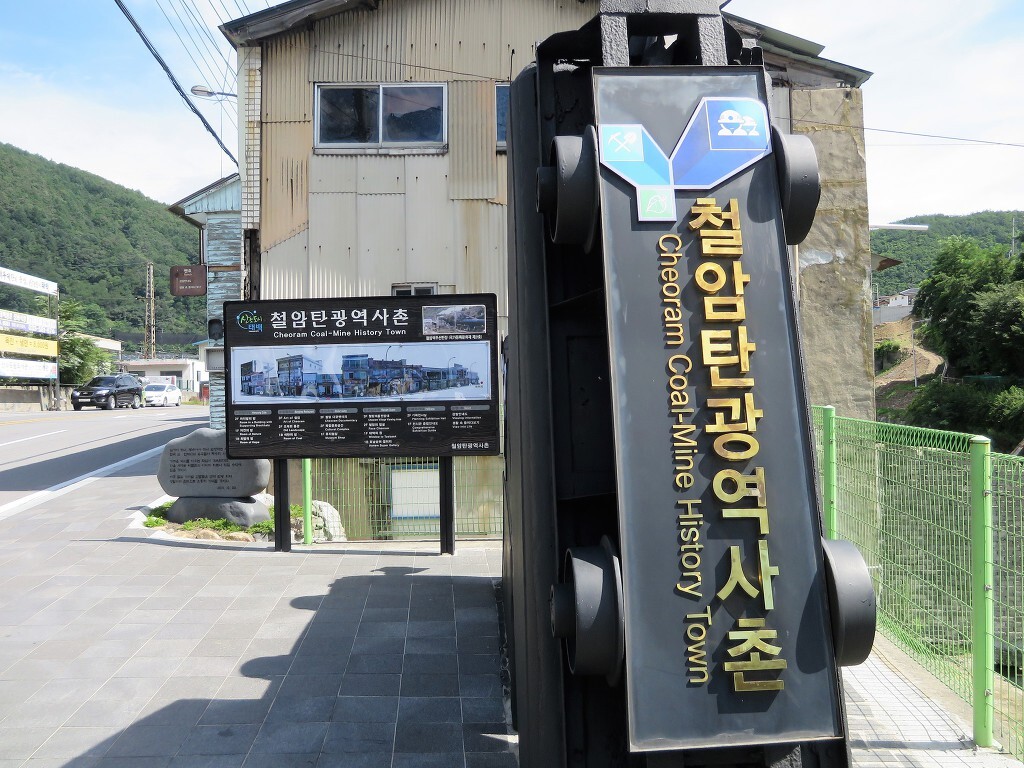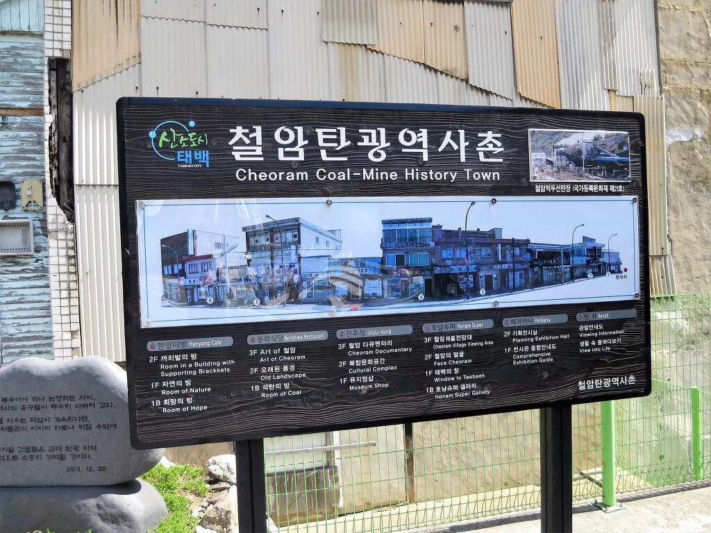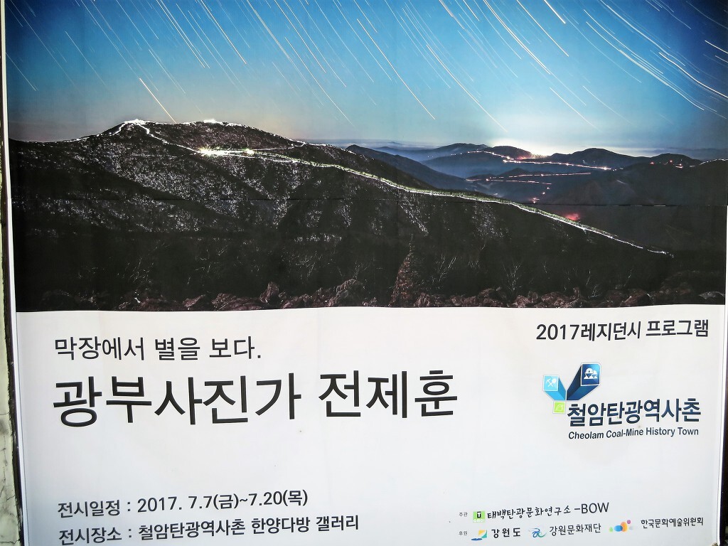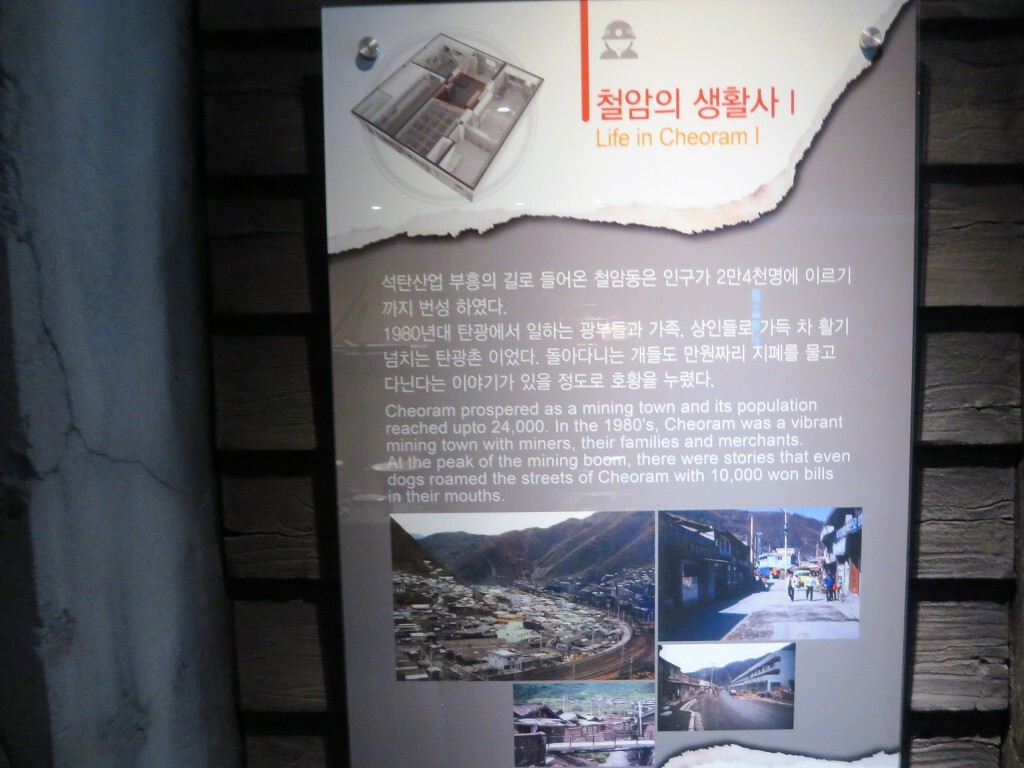 아래에는 해설자가 있고 사진 전시회도 있습니다.. 이곳은 철암탄광역사마을이라고 합니다.. 석탄은 도로 반대편에서 여전히 파고 있습니다..