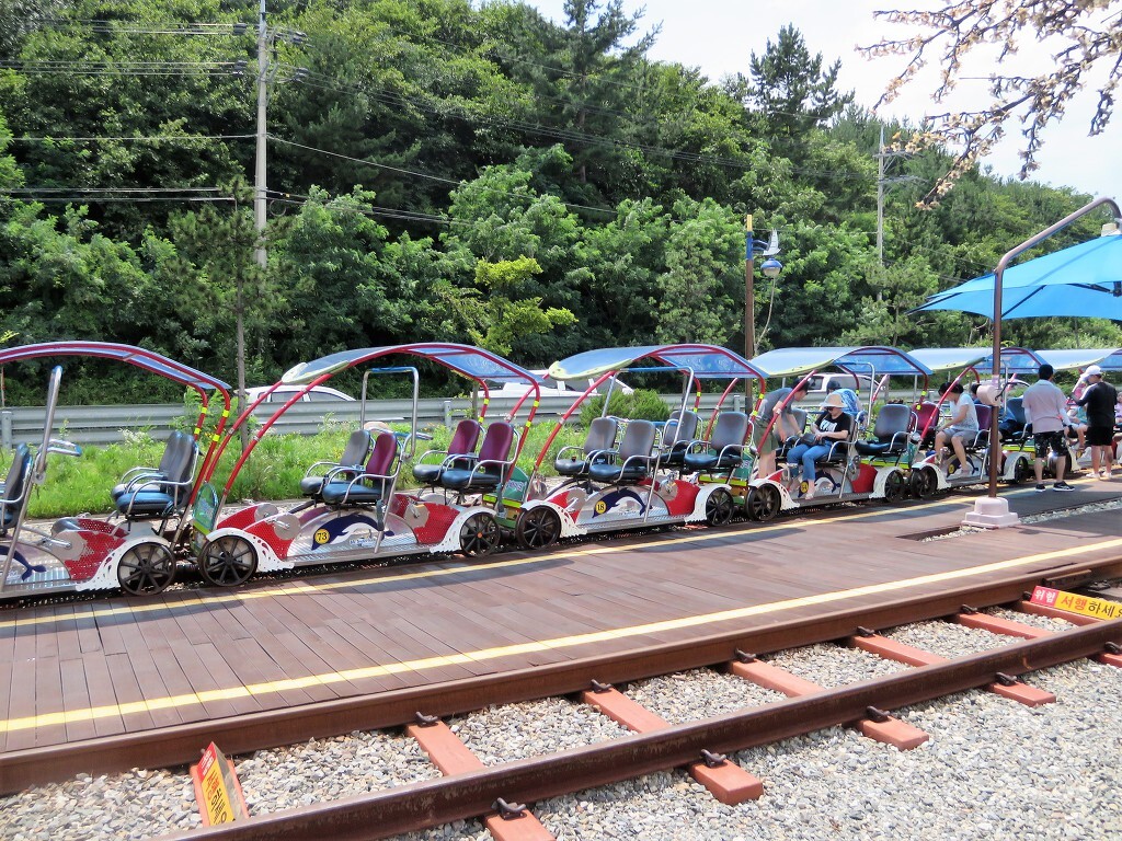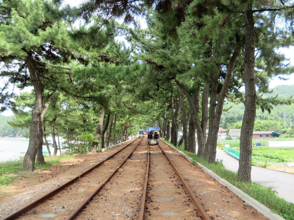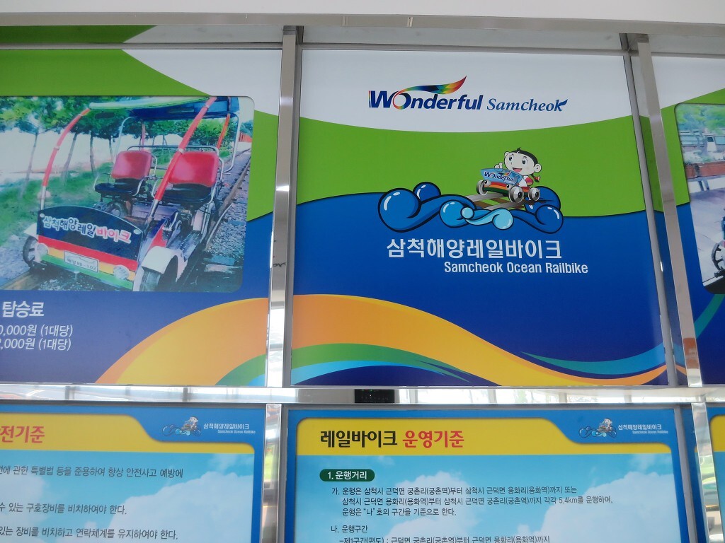 태백을 떠나 바닷가 삼척으로 갔다.. 점심 먹기 전에 해안을 따라 있는 오래된 철로에서 레일바이크를 타고 싶어요.. 바다를 바라보며 달리는 상쾌하고 짜릿한. 궁촌역과 용화역으로 이동 2위치가 있으며 완료되면 셔틀 버스가 그곳으로 이동합니다..