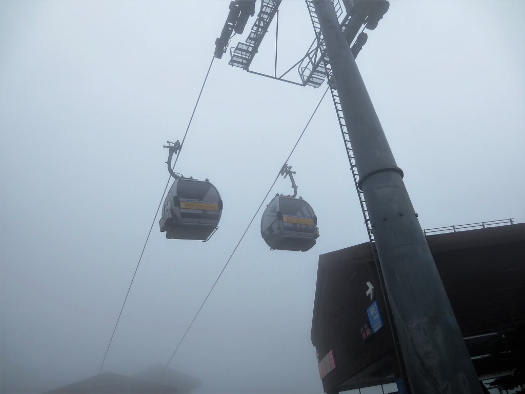 아침 식사 후 짐을 싸고 마운틴 콘도 스키장 정상으로 향하기로 했다.. 관광곤돌라를 타는데 안개때문에 잘 안보이네요. 1,340m산 정상에 오르니 춥다. 두꺼운 재킷도 무료로 빌릴 수 있습니다.. 정상에서 커피 한 잔 후 다시 곤돌라를 타고 내려와 고속도로 휴게소에서 점심을 먹고 서울에 도착해 가족 여행을 마무리했다..