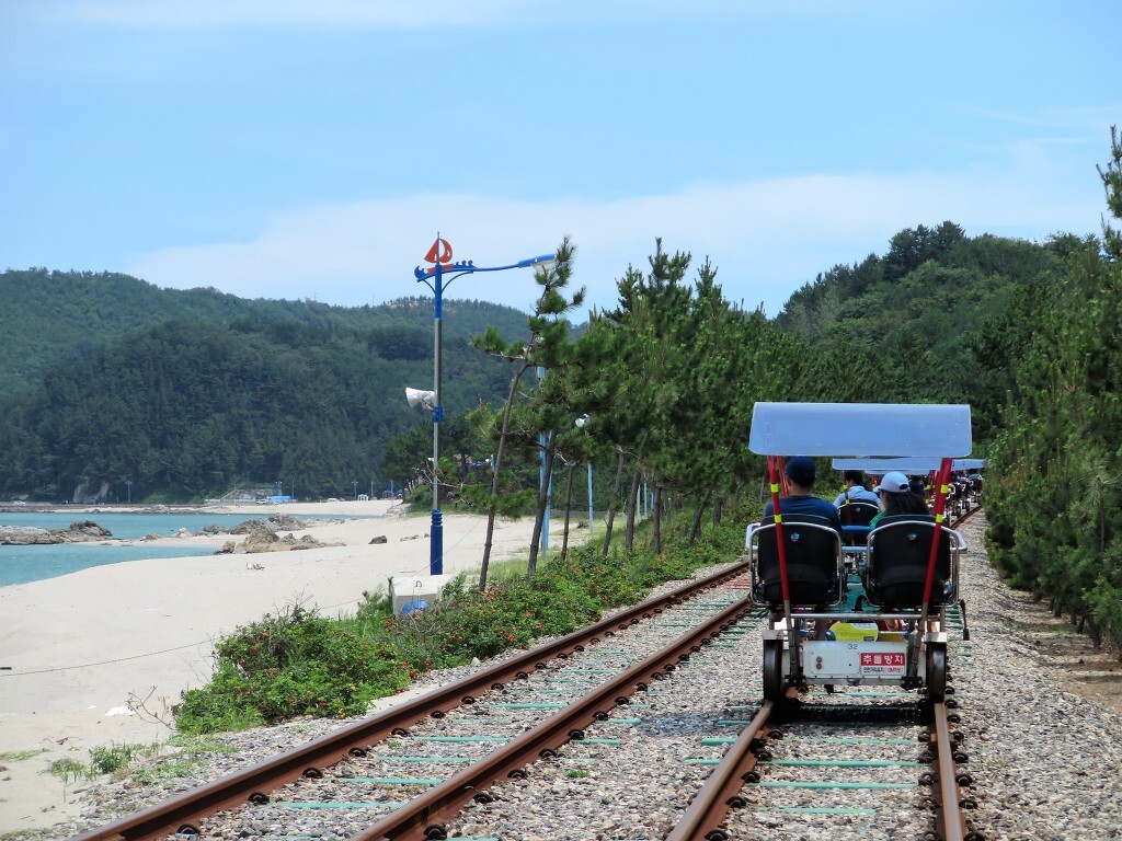태백을 떠나 바닷가 삼척으로 갔다.. 점심 먹기 전에 해안을 따라 있는 오래된 철로에서 레일바이크를 타고 싶어요.. 바다를 바라보며 달리는 상쾌하고 짜릿한. 궁촌역과 용화역으로 이동 2위치가 있으며 완료되면 셔틀 버스가 그곳으로 이동합니다..