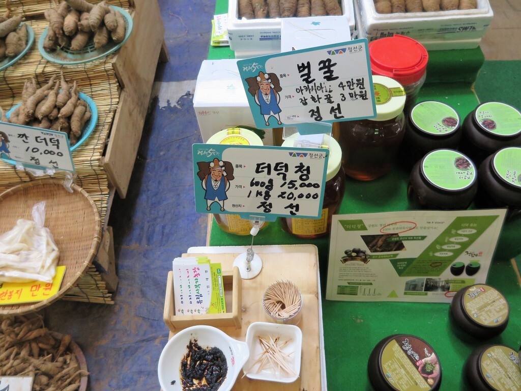 이곳에서 지역 경제에 조금이나마 도움이 되고자 산더덕과 꿀, 지역 황기를 구입했습니다.. 그리고 여기 음식도 맛있었어요.. 좁쌀과 녹두 빈대떡, 올챙이 국수, 고등치기면, 올갱이탕에서는 재미있는 이름으로 강원도의 맛을 느꼈습니다..