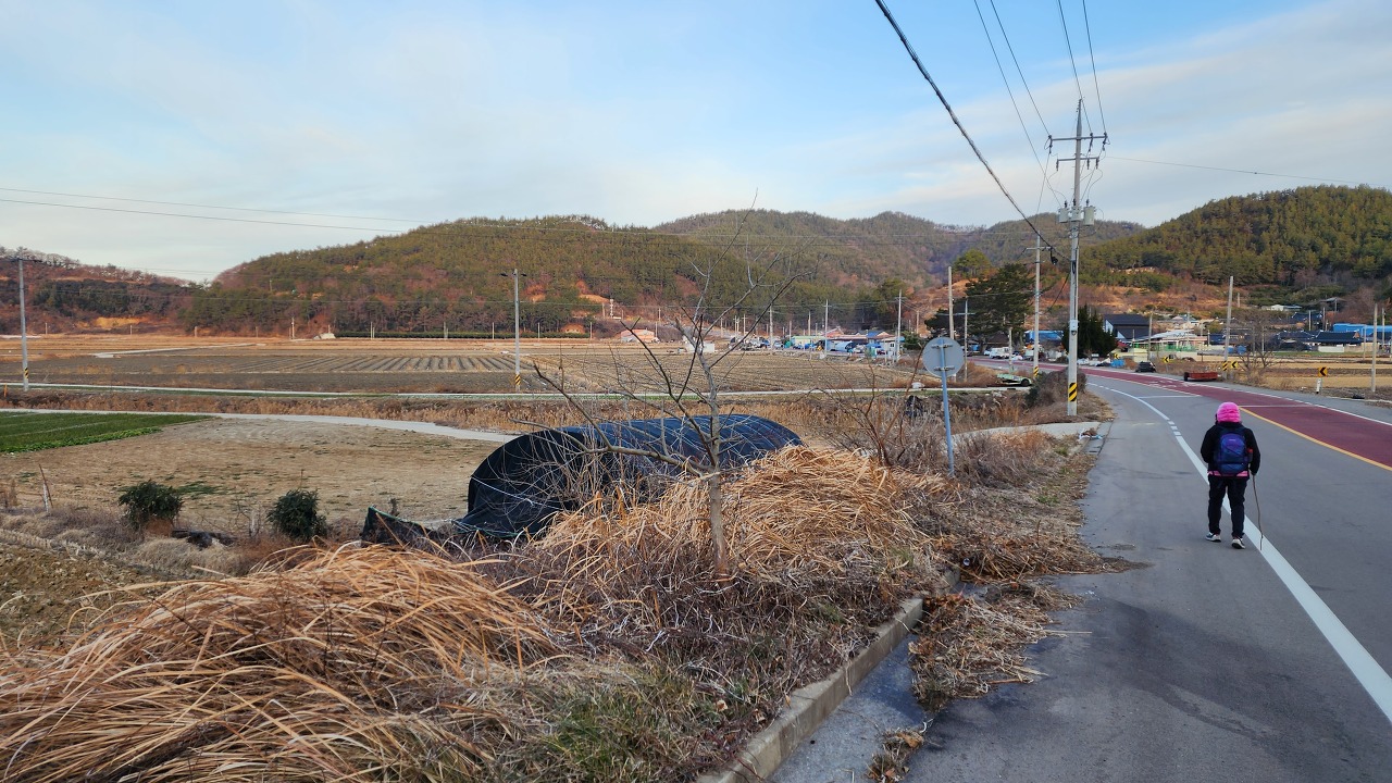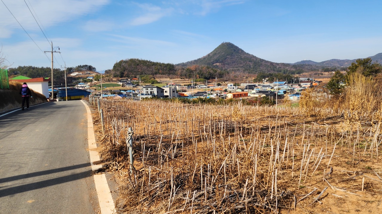 11; 08고개 : 매동마을이 내려다보이고 비봉산(218.4m)이 확연히 보인다.