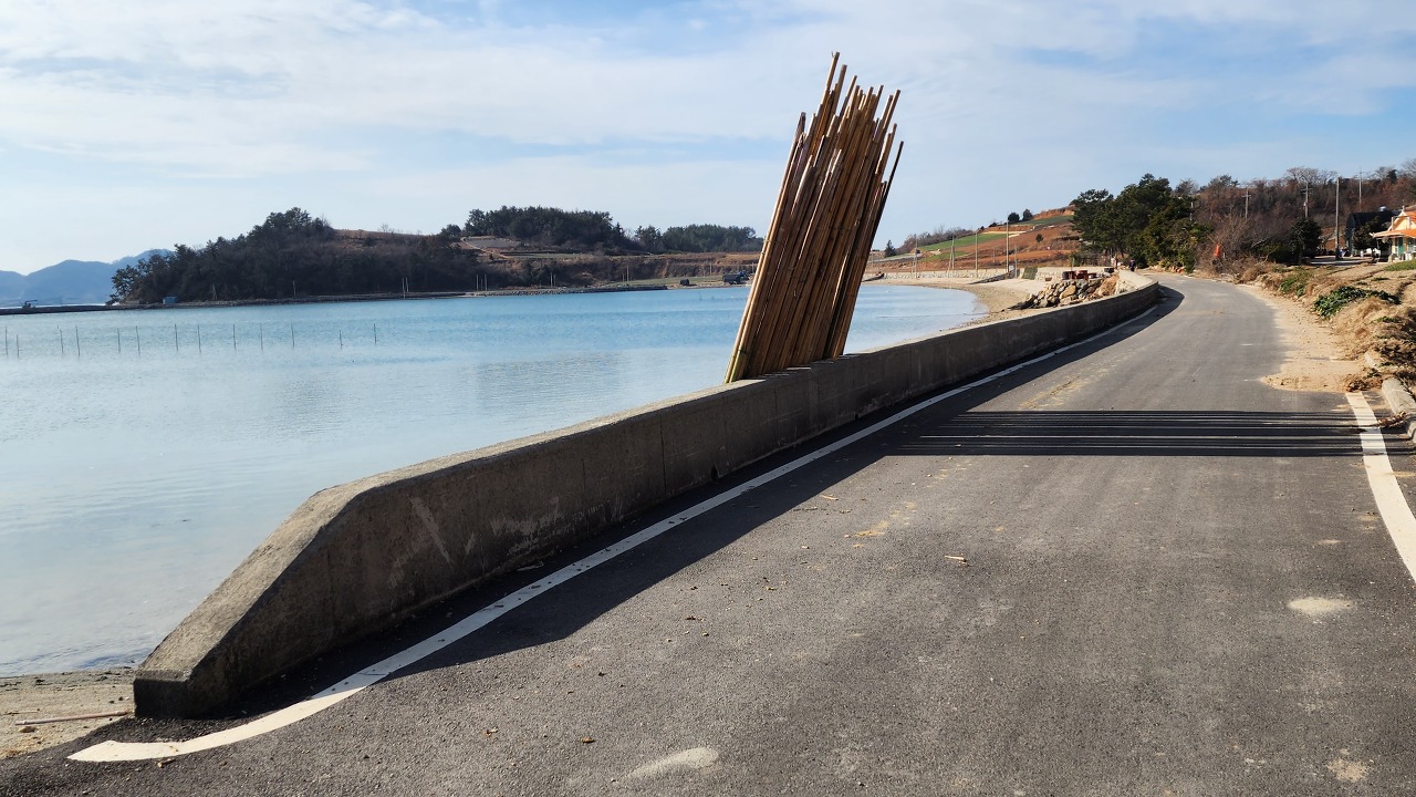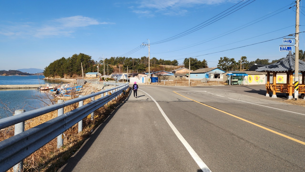 11:35 동봉선착장 팔각정 및 버스정류장 해안도로를 따라간다.