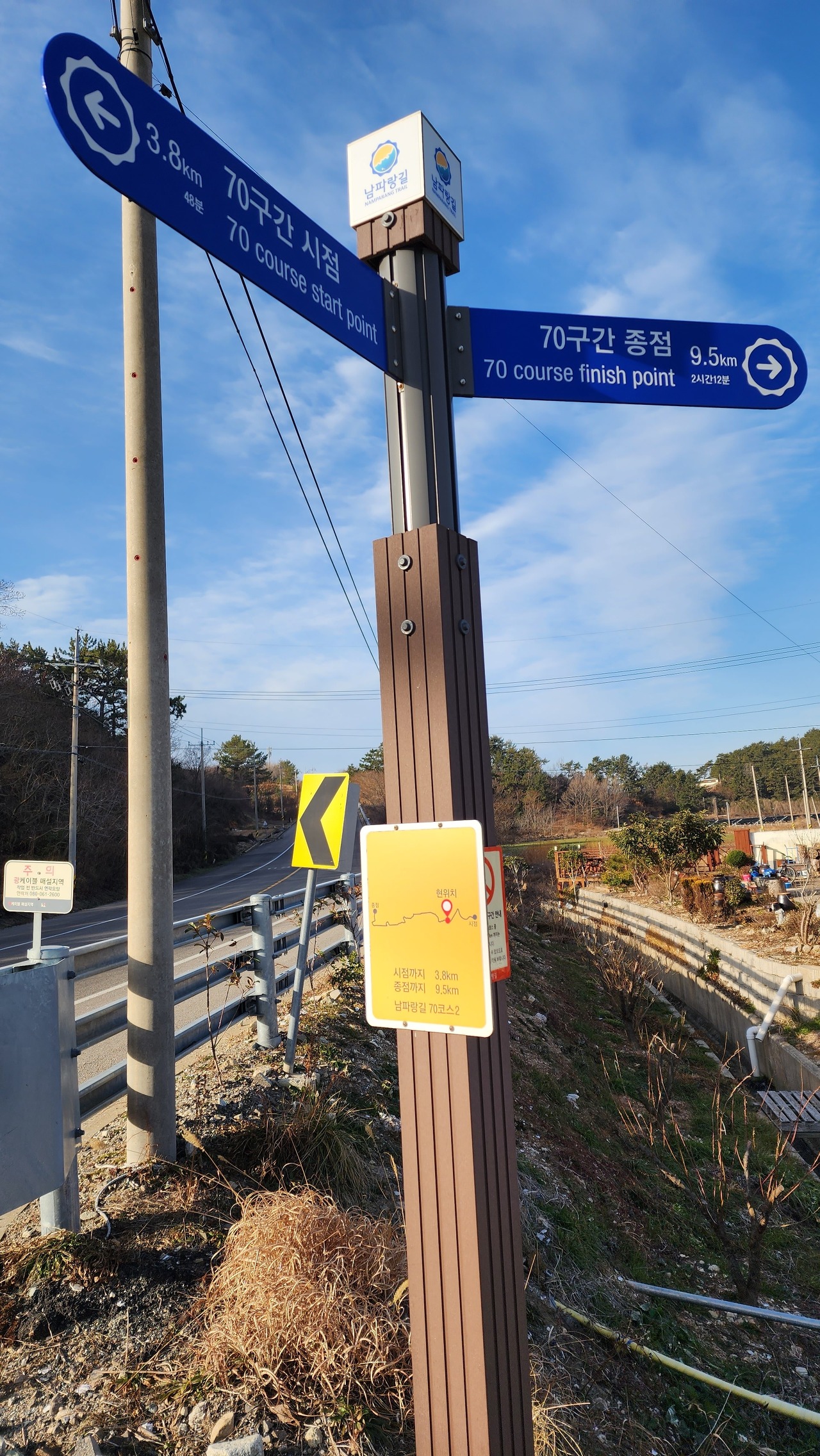 09:25. 남파랑 시작점 3.8km 종점 9.5km 이정표.