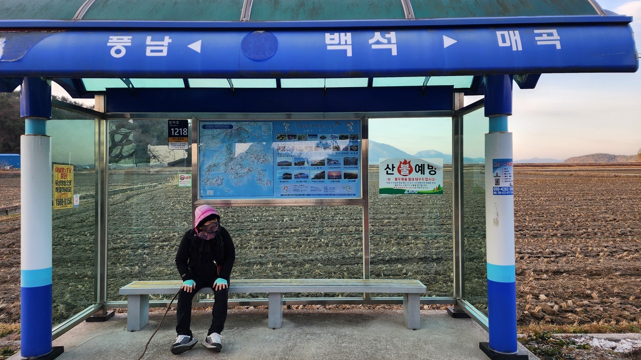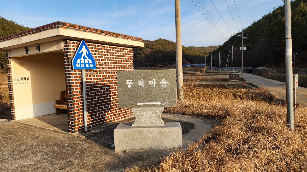 08:18.둥적마을 1km 표지판 및 정류장.
