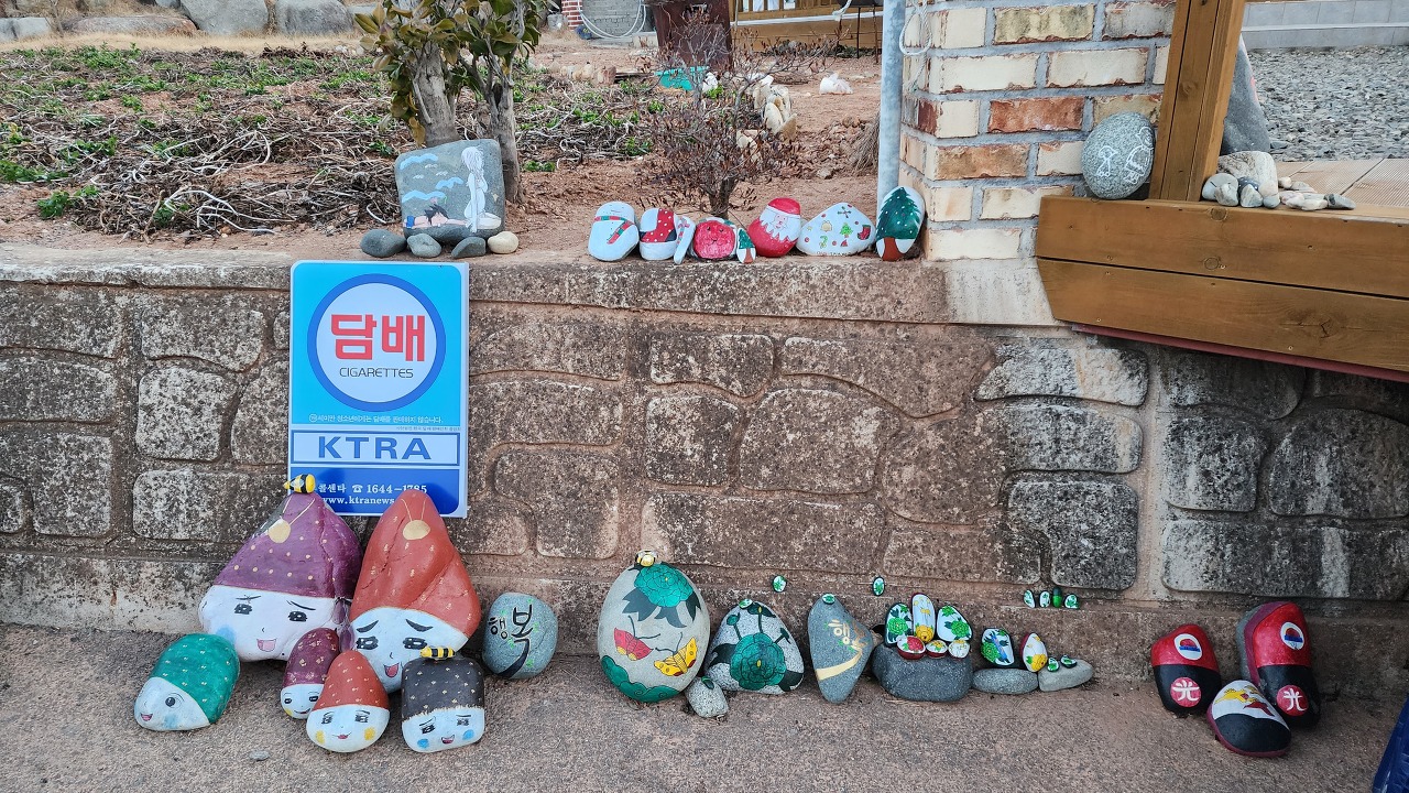 07:27 풍남수퍼마켓. 바다의 돌에 그려진 얼굴들이 흥미롭다.