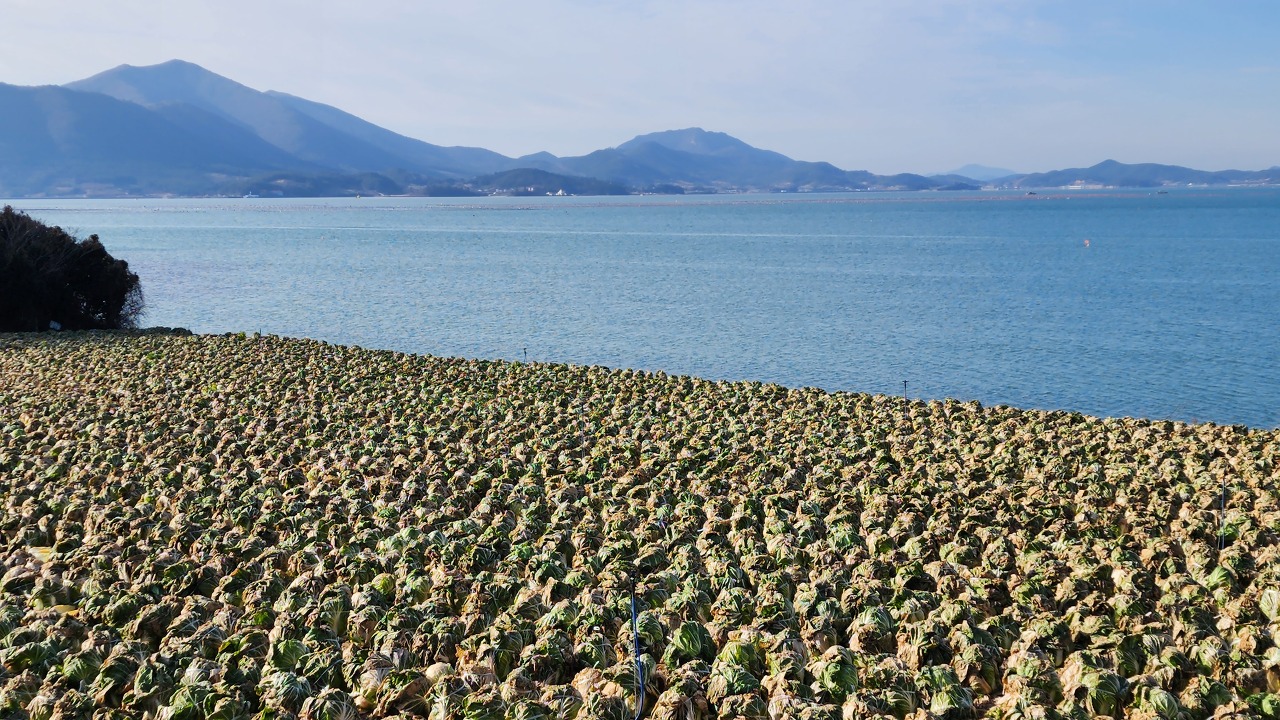 배추밭 뒤 거금도.