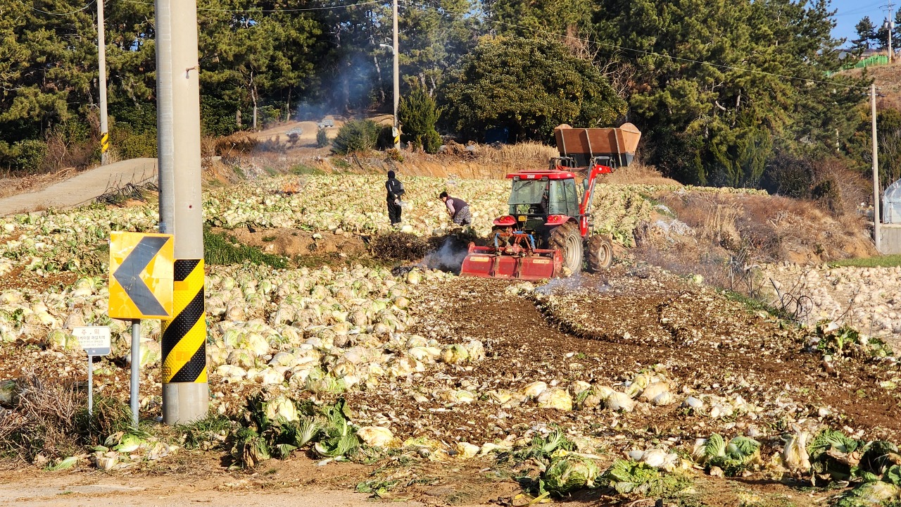 09:46 사인간다. 배추밭의 배추는 트랙터로 갈고 있다. 가격이 안 맞는 것 같습니다.