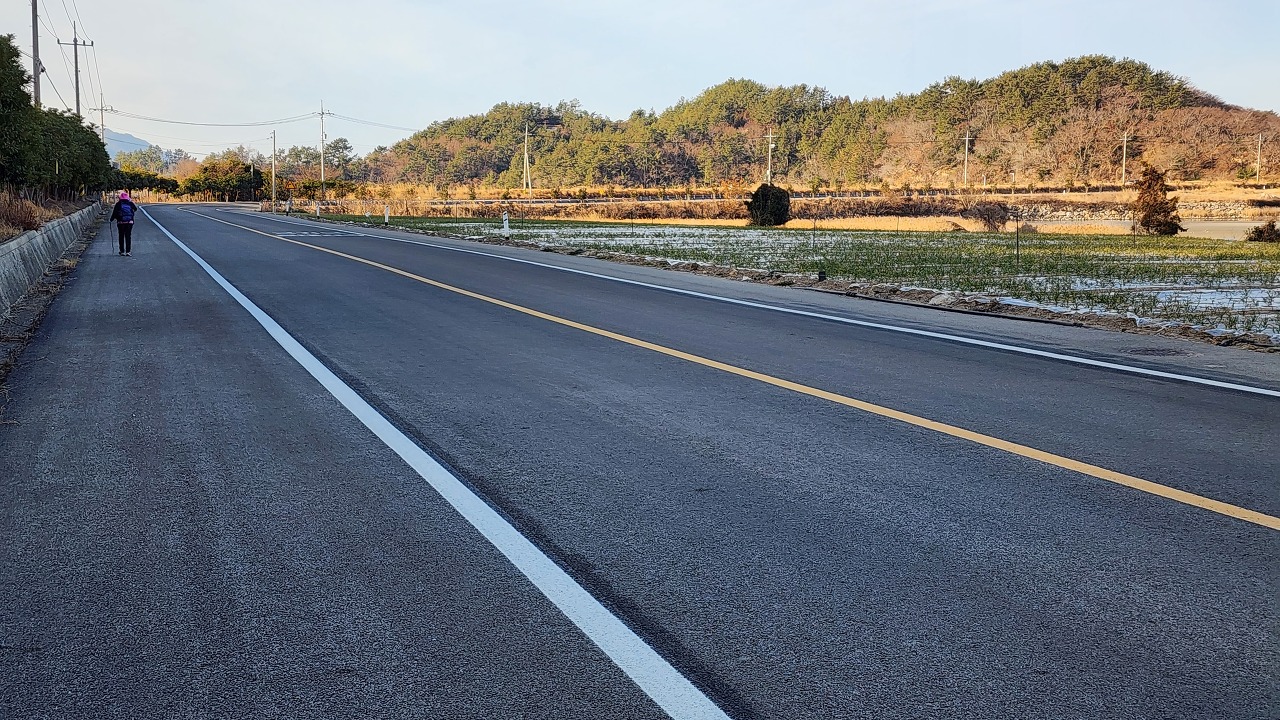08:13 백석마을회관 앞 남파랑70점 안내판 및 정자 그만하다.