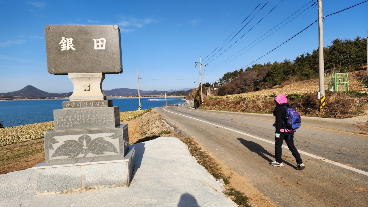 08:13 백석마을회관 앞 남파랑70점 안내판 및 정자 그만하다.