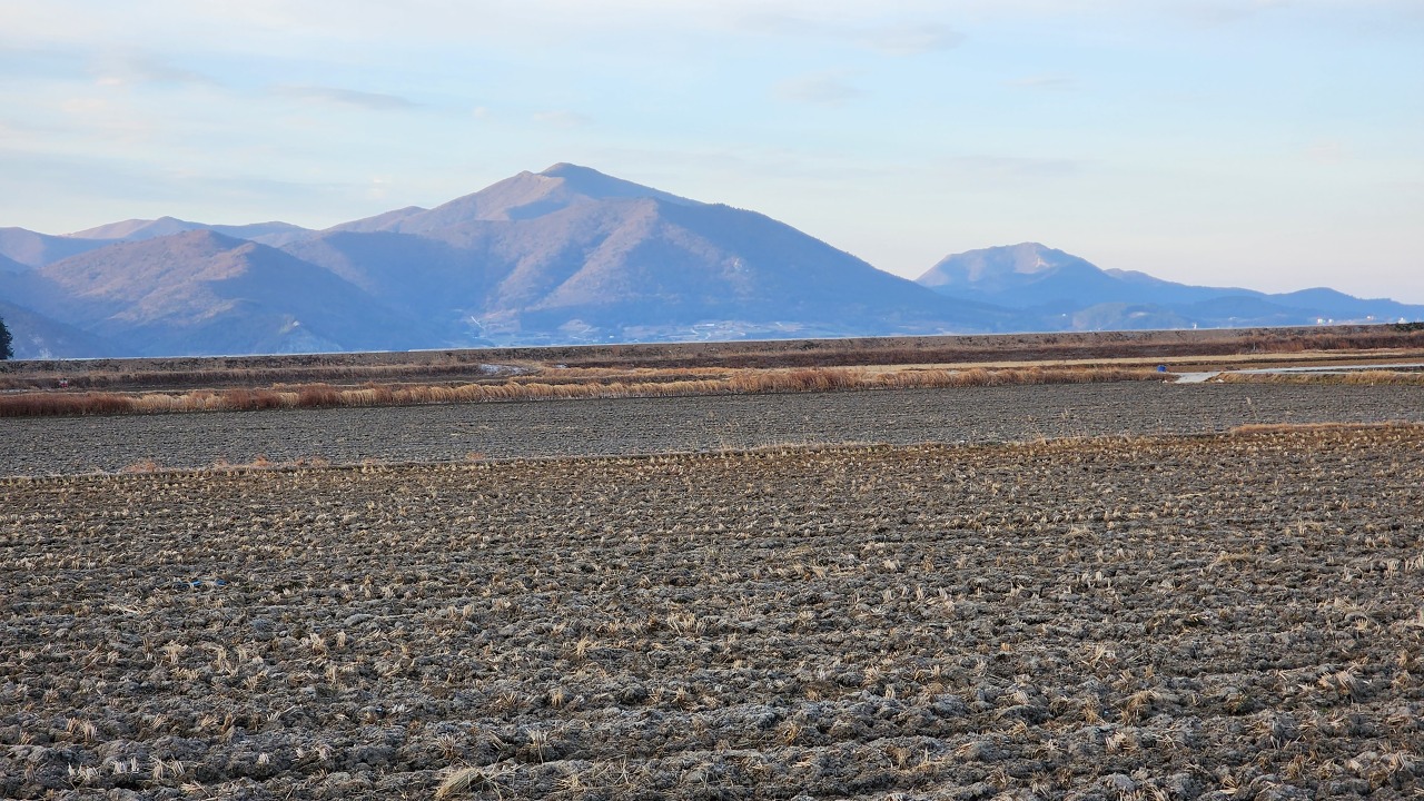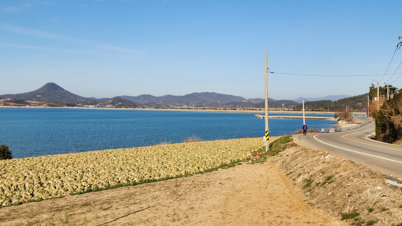 장계지부 배추밭과 제3방조제, 비봉산(220.5m).