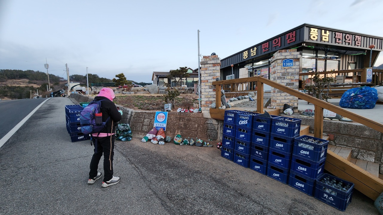 07:27 풍남수퍼마켓. 바다의 돌에 그려진 얼굴들이 흥미롭다.