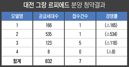 이 가운데 대전 둔산동에 미래인이 시공하고 대우건설이 시공 중인 ‘그랑르피에드’가 지난 14일부터 분양에 들어가 눈길을 끈다. 이 단지는 47층 높이로 둔산권 최고층이다. 전용면적 119㎡, 전용면적 169㎡, 총 832실의 5개동으로 구성되어 있으며, 최고 수준의 시설과 입지를 자랑합니다.