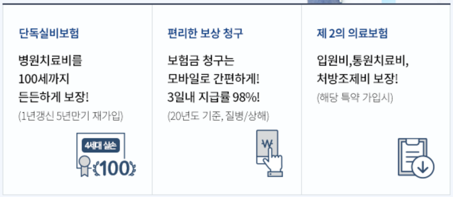 <基本配置>1. 실제 손실 의료비: 병원비를 충당하고 급여에 포함되지 않은 차액을 지불합니다2. 3대질환 : 암, 뇌, 심장(검사한계범위) 3. 부상 및 질병에 대한 수술비 : 1~5종(각 업체별 조건 확인) 4. 항암관련 특수의약품 : 표적항암, 양성자, KAT 등 (재생형에 한함, 다른 회사)