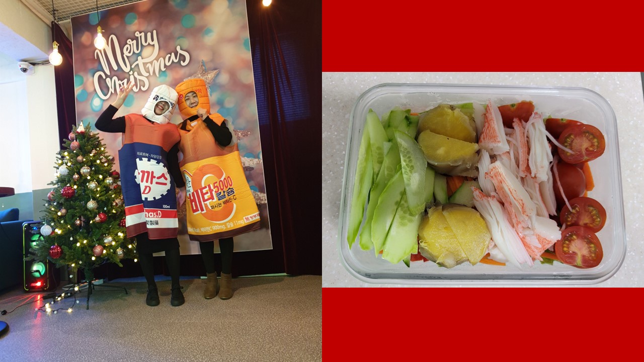 이정미: 첫 사진은 2020년 졸업식 때 찍은 거다. 저와 스태프 한 명이 피로하지 않은 옷을 입고 입장하는 손님들을 맞이했습니다. 그리고 두 번째 사진 뇌경색으로 마비된 남편이 8개월 만에 나를 위해 아침식사를 준비하는 사진이다.