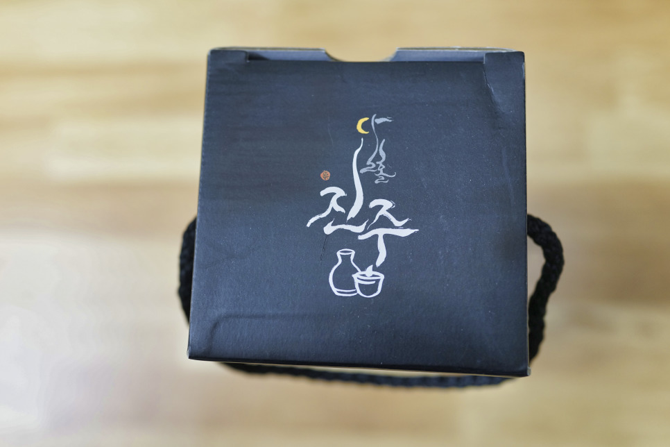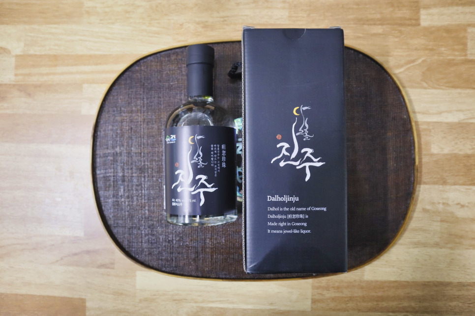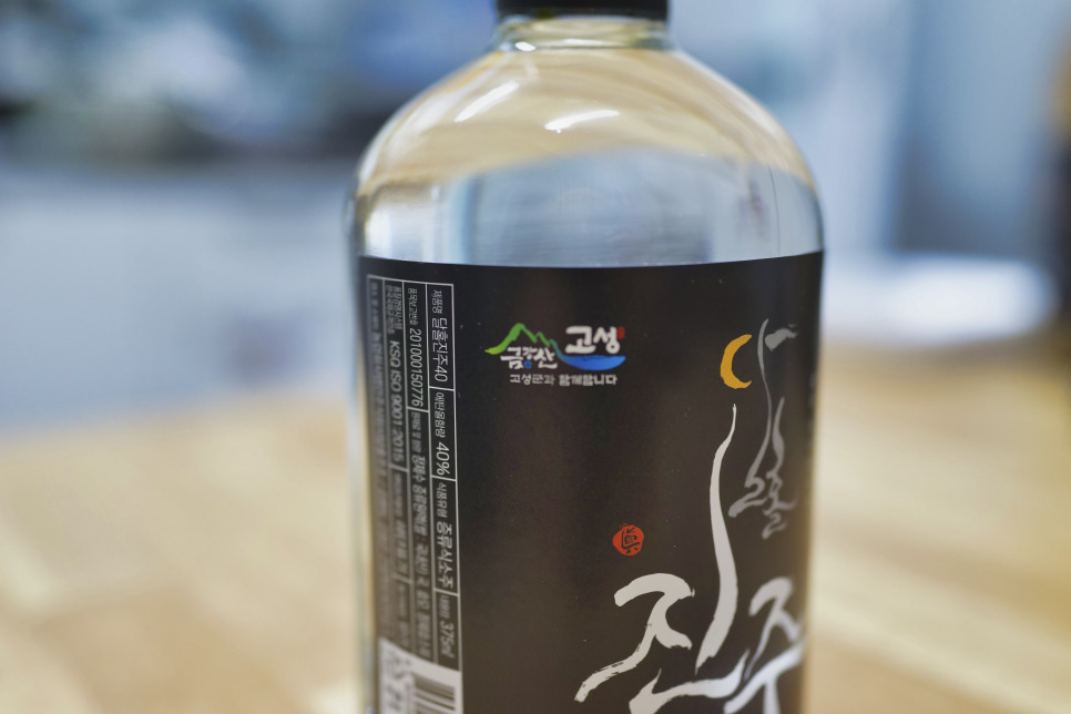 내부의 병은 투명한 병에 들어 있습니다. 유리 외부에 스티커가 붙어 있습니다. 그는 원래 2대째 막걸리 양조장을 운영하다 소주를 시작했다고 한다.