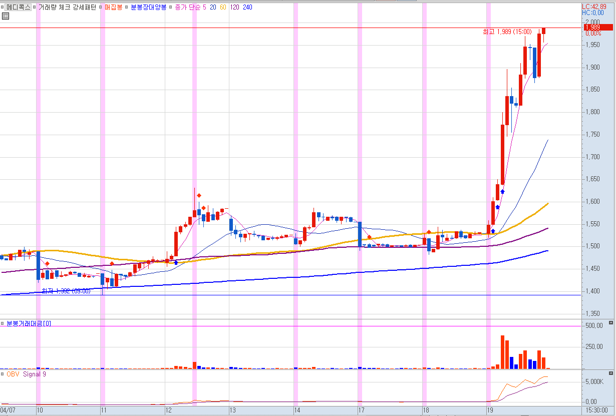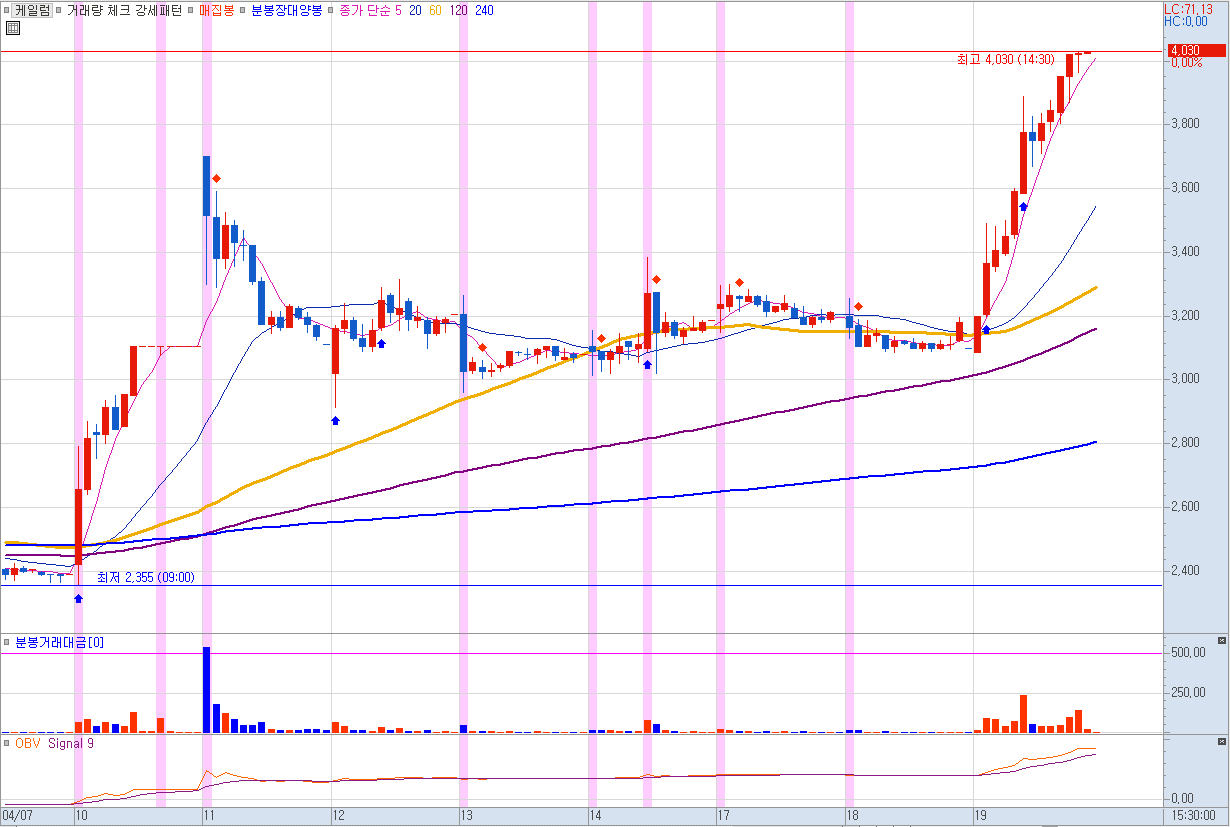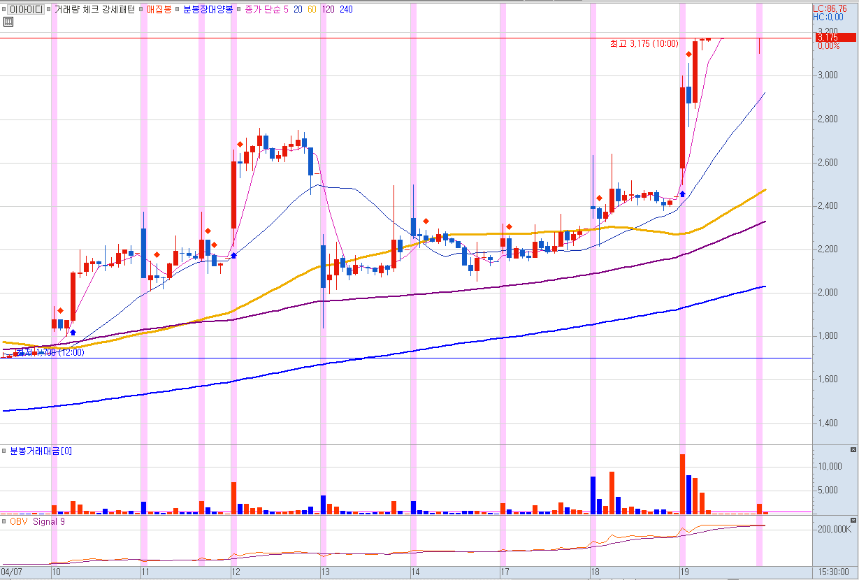 종일 특집 주간이트론, 셀루메드, 카프로, 아모센스, 실리콘2, 알에프세미, 에이치비엘바이오, EID, 씨에스, 엘앤에프 등 총 10개 종목이 상승세를 이어갔다. 특히 이트론과 EID는 상한가를 돌파하며 강한 상승세를 이어갔다.