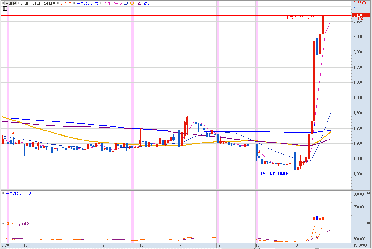 글로본: 중국 재개장에 따른 면세점 및 화장품 산업 수혜 전망 등 화장품 테마가 떠오르면서 상한선에 도달.