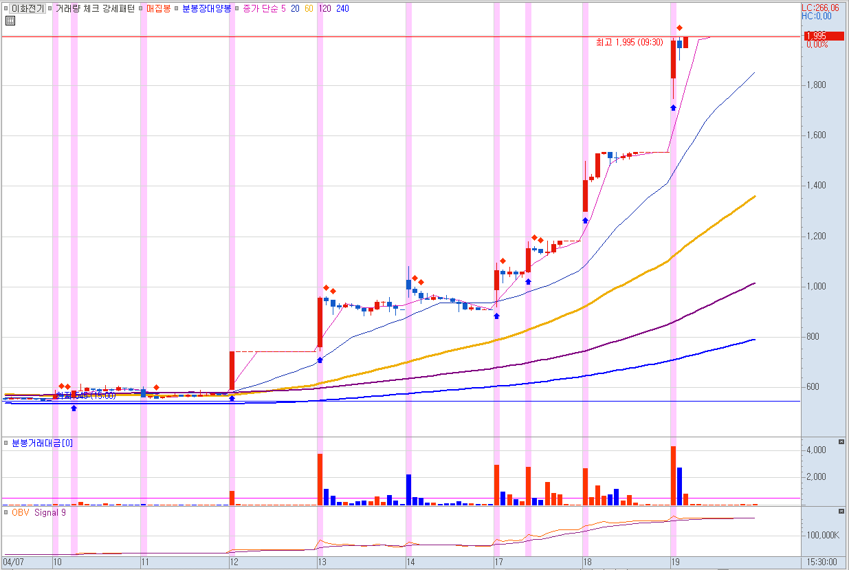 전일 상한선상승 종목으로는 이화산업, SM벡셀, 이화전기, TSI, 그린스네이크이앤엠, 모베이스전자, 율에너텍 등이 올랐다. 특히 이화산업과 이화전기는 상한선을 돌파하며 강한 상승세를 이어갔다.