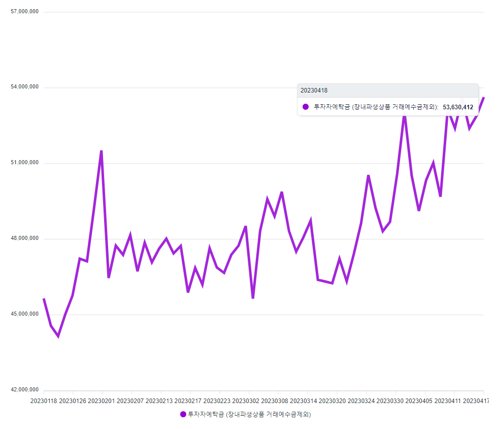 오늘 고객 예치금7,389억 원 감소한 53조 6,300억 원입니다.