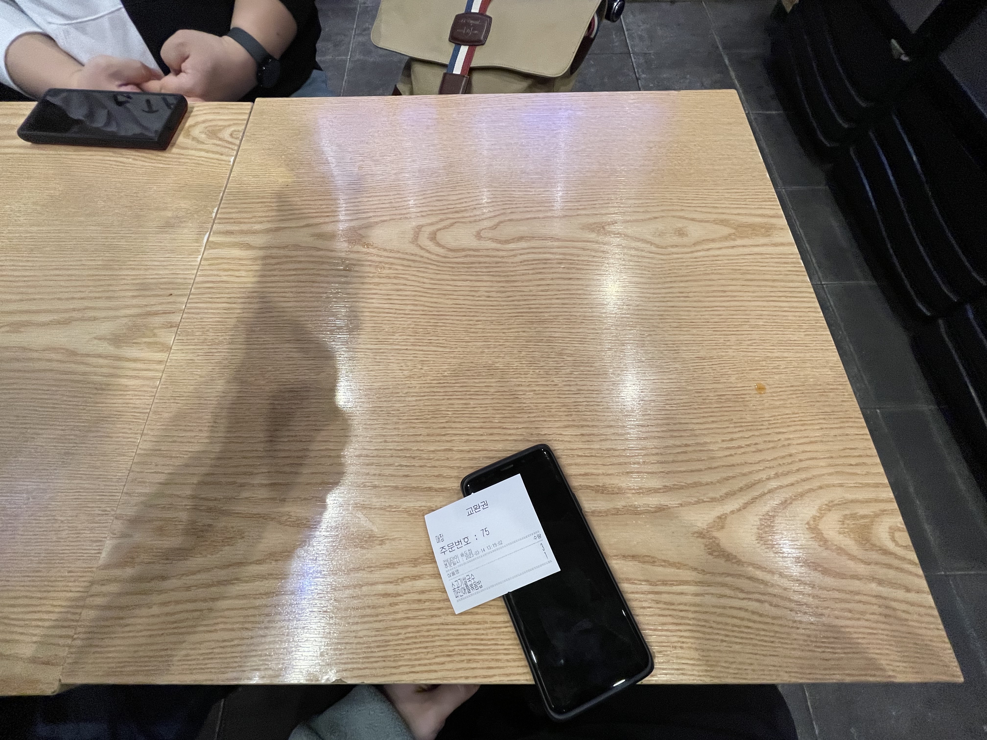 입구 왼편에 있는 키오스크에서 주문을 하고 주문번호를 받고 자리에서 기다렸다.
