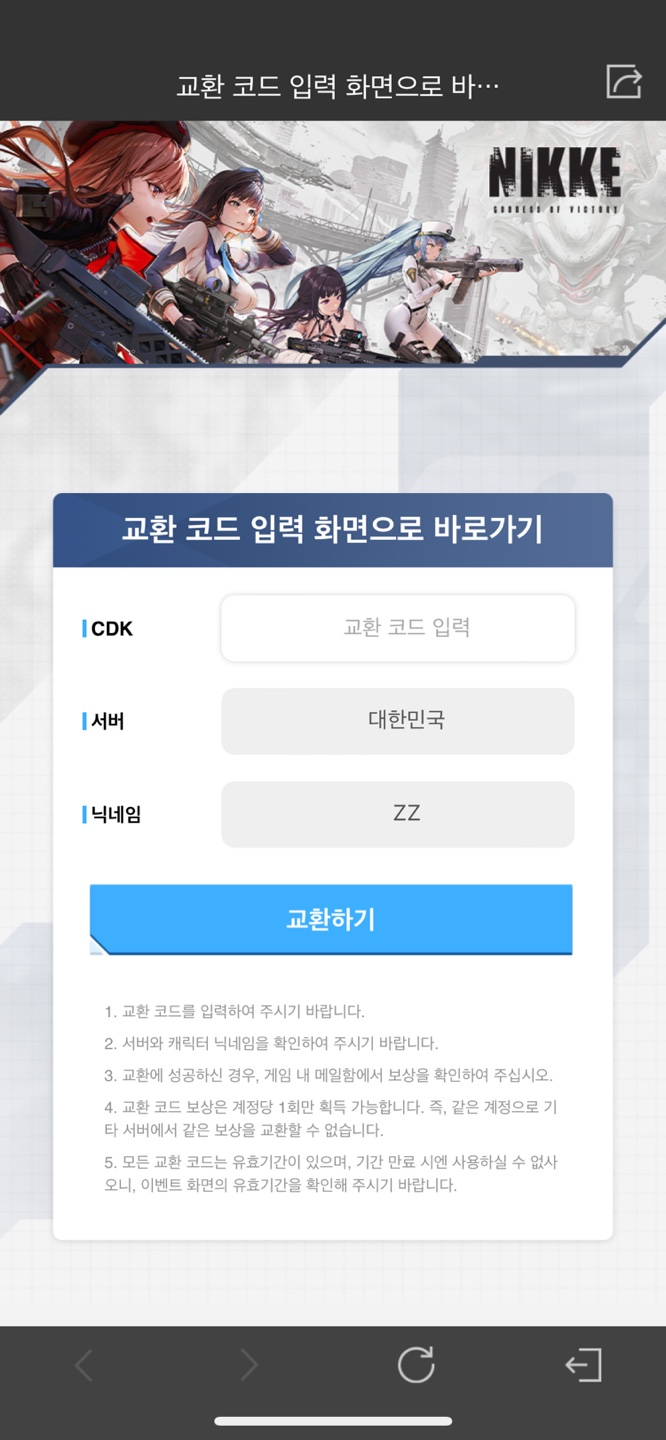 알림 하단의 “교환 코드 입력 화면 링크”를 클릭하십시오.